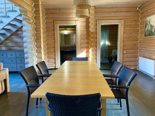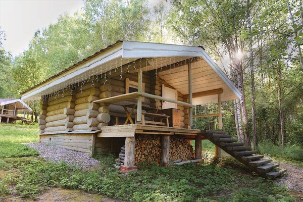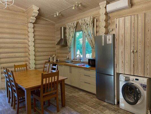 На территории доступна аренда «Таёжной бани» (до 6 человек) и «Большой бани» (до 15 человек).