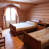 Отель рассчитан максимум на 50 гостей. Для гостей – собственная территория 14 гектаров с лесом, лугами, земляничными полянами, сосновым бором на горе и яблоневым садом. Береговая линия более 500 метров, песчаный пляж, пирс, русская баня и ресторан на берегу.