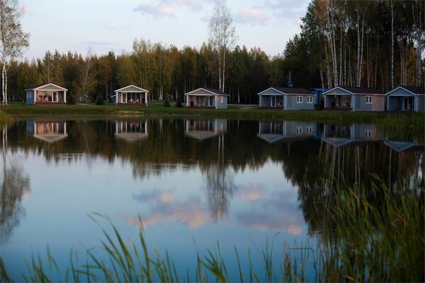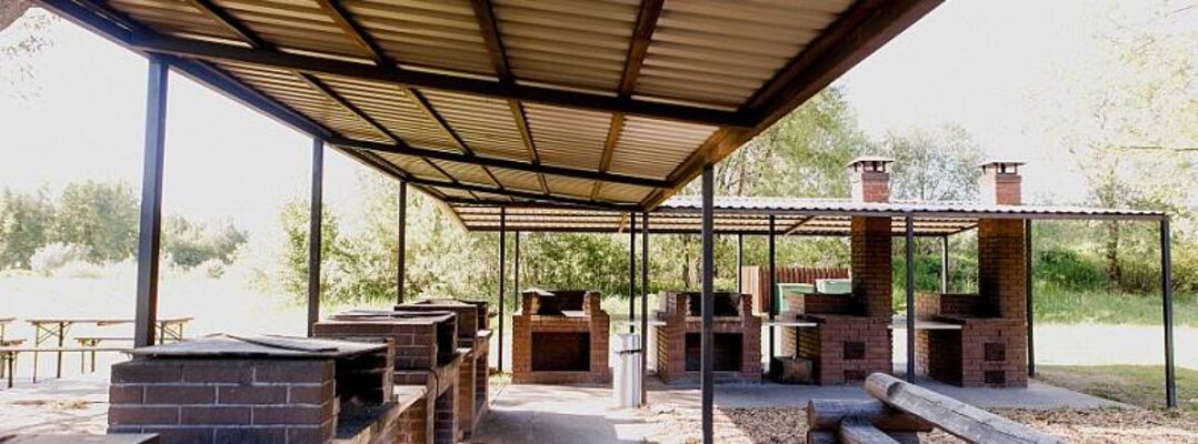 На берегу озера под навесами расположены стационарные мангалы и печи для казана, оборудованы освещением, удобными столами и кухней с холодильниками, плитами и микроволновой печью. На кухне имеется полный набор посуды, чтобы каждый чувствовал себя настоящим шеф-поваром у мангала.