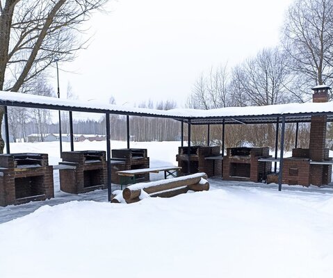 Постояльцы комплекса могут 24/7 пользоваться мангальной площадкой с 6 мангалами и 2 печами для казанов (входит в стоимость проживания). Дополнительно можно приобрести уголь — 350 ₽, розжиг — 200 ₽. В аренду предлагаются шампура (6 штук) — 200 ₽, решётка — 200 ₽.