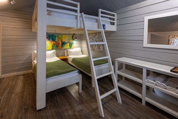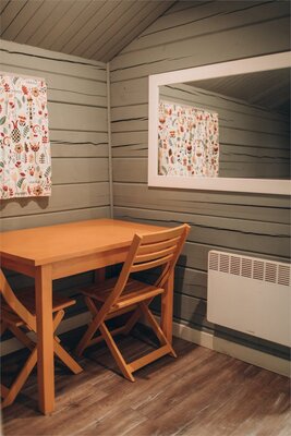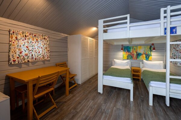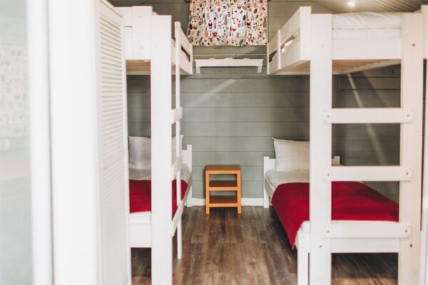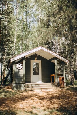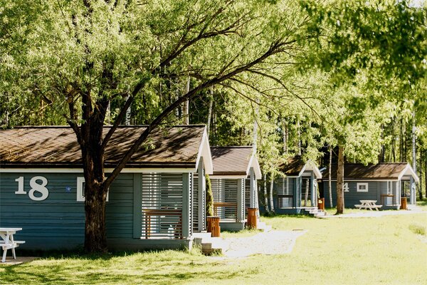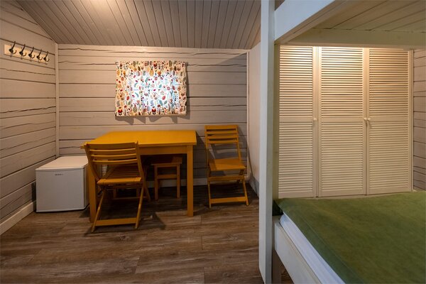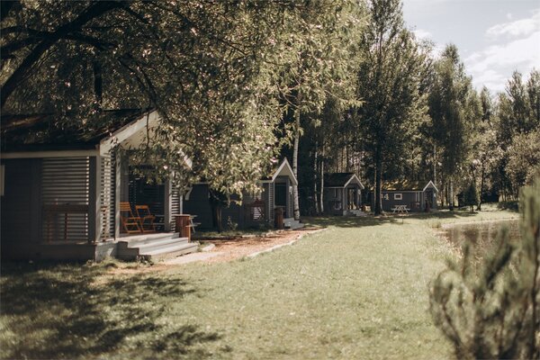 Каждый домик оснащен необходимой мебелью, холодильником и полотенцами, а скандинавский стиль интерьера добавляет уюта. В шаговой доступности находятся комфортабельные санузлы с душевыми, общая кухня и оборудованная барбекю-площадка. Рядом с домиками предусмотрены деревянные обеденные зоны для приятных трапез на свежем воздухе.