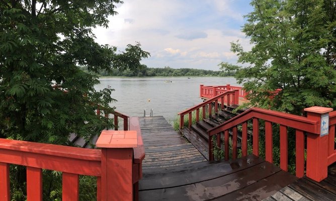 Понравилась зеленая территория и красивые виды на реки. Для неспешных прогулок прекрасное место. Кормили неплохо, было из чего выбрать. Купаться уже не рискнули в Волге, так как прохладно, но по пляжу прогулялись. Попробовала себя в теннисе. Спасибо Владимиру за терпение)) Место хорошее.
