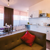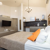 Апарт-отель Симпатико расположен в Тюмени. К размещению предлагаются комфортабельные номера разных категори. Номера оснщены всем необходимым для проживания. Для гостей на территории апарт-отеля работает парковка и интернет. К услугам гостей также имеется конференц-зал.