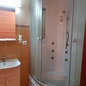 - бассейн большой глубина от 1,3 м. до 1,7 м., размер 16 на 9 м. с 2 пушками по типу душа шарко;