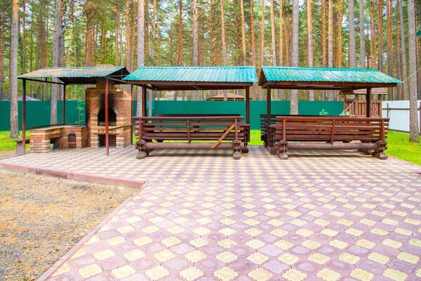 - Беседки № 1 и № 4 (до 30 гостей, свет, розетка, крытая мангальная зона) — 500 ₽/час.