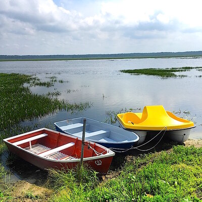 Романтические прогулки на весельных лодках и 4-х местных катамаранах по водной глади живописного озера в заказнике регионального значения «Лебяжье»! Предоставление лодок и удочек в аренду для увлекательной рыбалки!