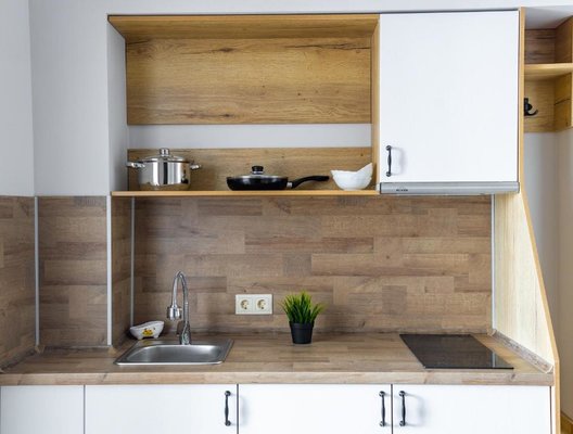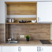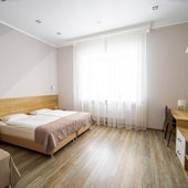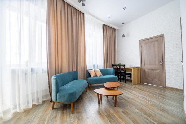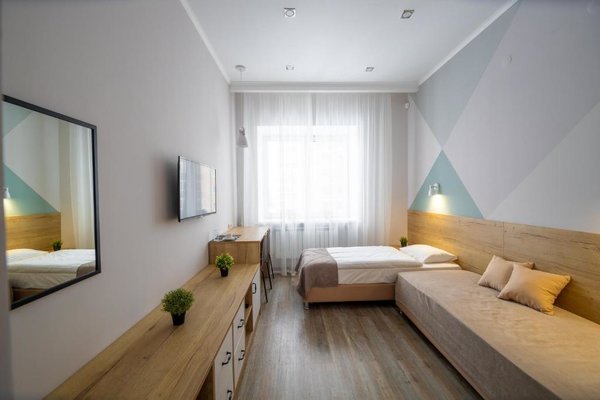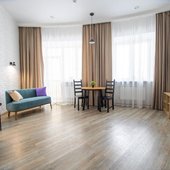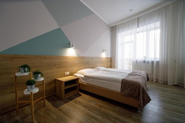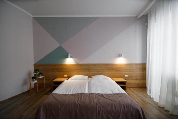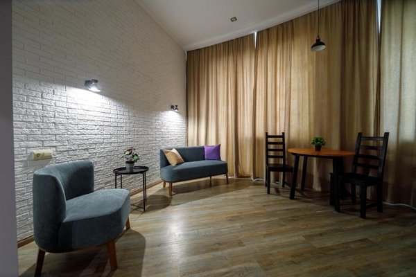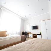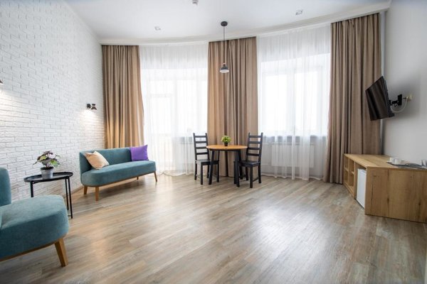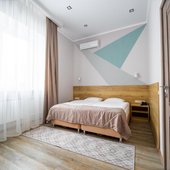 Для гостей 30 комфортабельных номеров с дизайнерским ремонтом, одно-, двухместные номера, студии, общей вместимостью 86 человек.