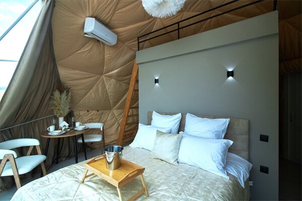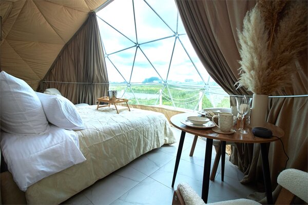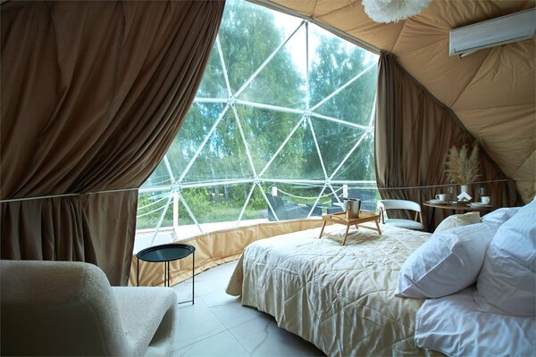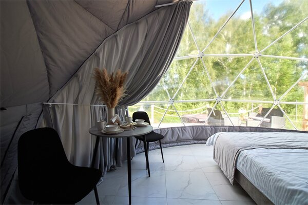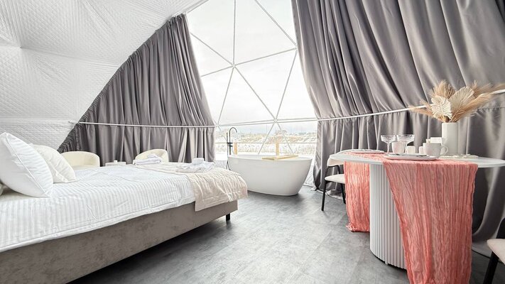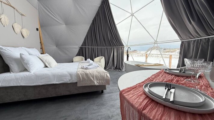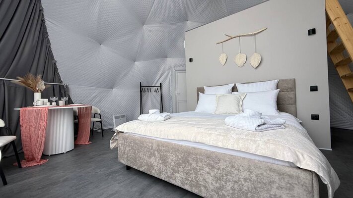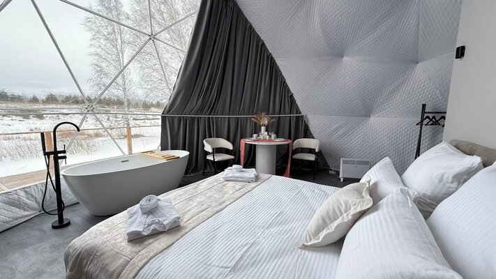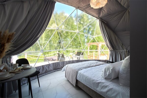 Откройте для себя уникальный формат отдыха в наших стильных геокуполах, оснащенных изысканной мебелью и всеми современными удобствами. Мы позаботились о том, чтобы каждый гость нашел здесь занятие по душе: будь то спокойный семейный отпуск с детьми, романтический уикенд или незабываемый девичник на свежем воздухе.