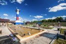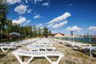 Летний пляж расположен на берегу бассейна (60х30х3 метра).