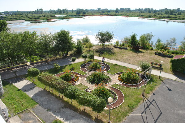 Уютная и ухоженная территория санатория утопает в зелени, создавая атмосферу спокойствия и умиротворения. Санаторий граничит с оживленной улицей Революции и живописной набережной озера Бабановское. Купание в озере не рекомендуется из-за особенностей дна и отсутствия результатов анализа воды.