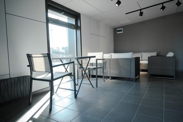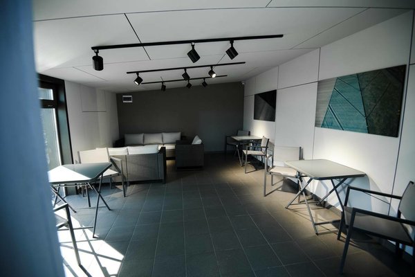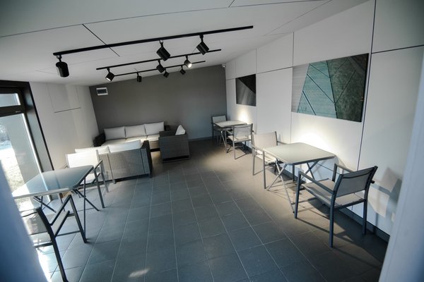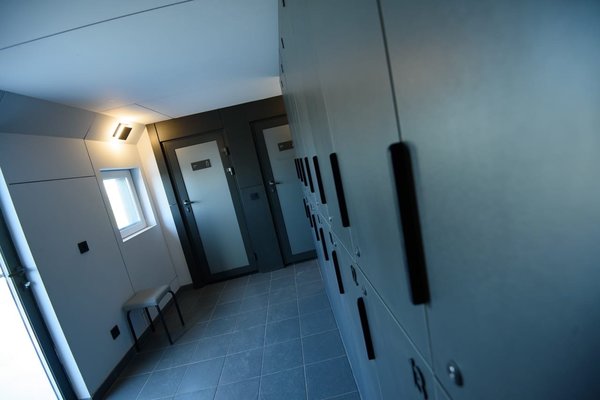 Вы также можете воспользоваться раздевалками, вмещающими до 14 человек, и расслабиться в специально оборудованной уютной комнате отдыха с ярким и просторным интерьером и панорамными окнами.