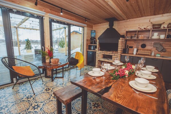 - 2 гриль-дома — мангалы внутри и снаружи, уютное пространство для компаний.