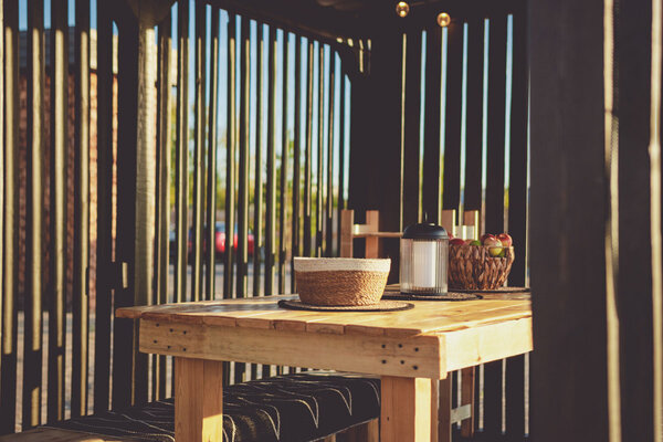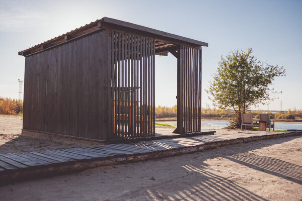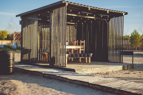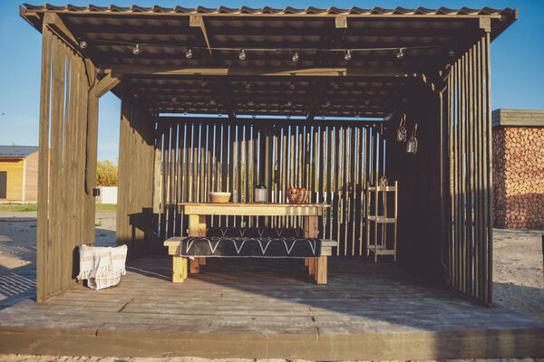 В беседке нет душевых, комфортный санузел находится вне дома.