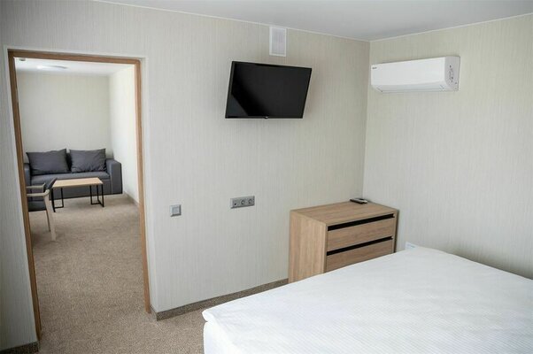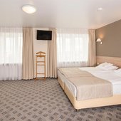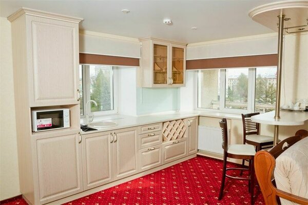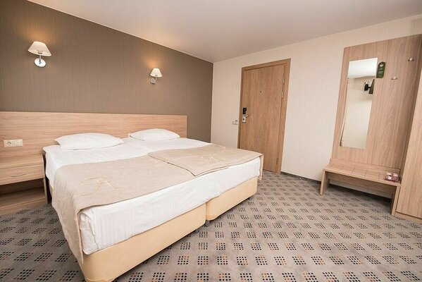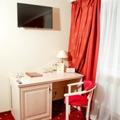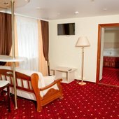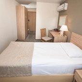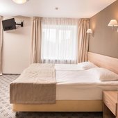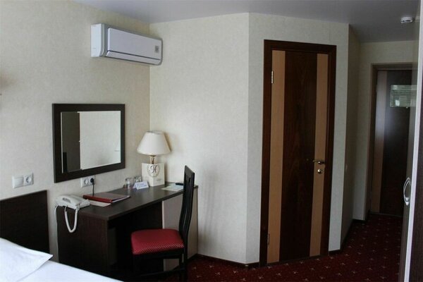 Пятиэтажный корпус отеля находится на пересечении улиц Пушкинская и Наговицына. Выбирайте из уютных одноместных и двухместных номеров разных категорий, включая стильные Апартаменты с кухней и джакузи. Классический интерьер, удобная односпальная или двуспальная кровать, плазменный телевизор, мини-холодильник и индивидуальный санузел в каждом номере.