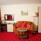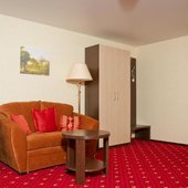 В отеле работает ресторан, где вы сможете насладиться завтраками, обедами и ужинами. К вашим услугам: библиотека, охраняемая парковка и бесплатный беспроводной интернет. Для проведения деловых мероприятий предусмотрены два современных конференц-зала — «Триумф» и «Гранд», оборудованных удобной мебелью, мультимедийной техникой (ноутбук, проектор, микрофон).