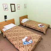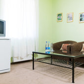 Между корпусами гостиничного комплекса есть площадка с горками и песочницей.