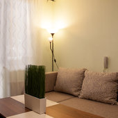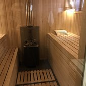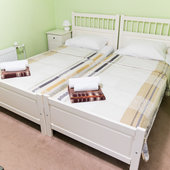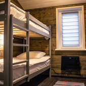 Домик для семейного отдыха с 2 спальнями, гостиной, кухней и сауной.