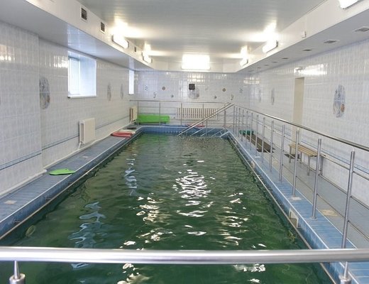 В санатории имеется крупный бассейн с душевыми комнатами.