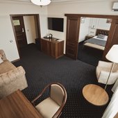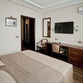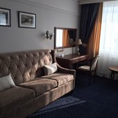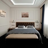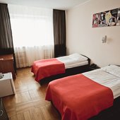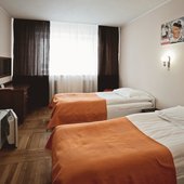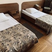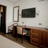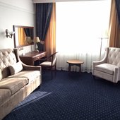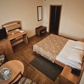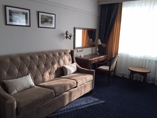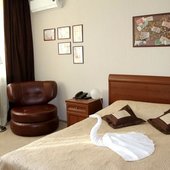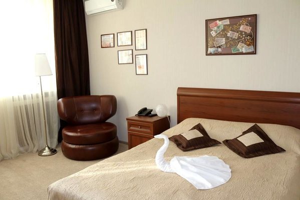 Трехэтажное здание отеля, оснащенное лифтом, было построено в конце 1980-х годов. Однако в гостинице регулярно проводятся ремонтные работы и реновации, поэтому отель выглядит стильным и современным. Жилой фонд включает в себя номера 4 категорий: Бюджет, Стандарт, Люкс и Комфорт. Во всех номерах есть собственный санузел с ванной или душем, телевизор, холодильник, беспроводной интернет. На каждом этаже отеля оборудована гладильная комната и установлены кулеры.