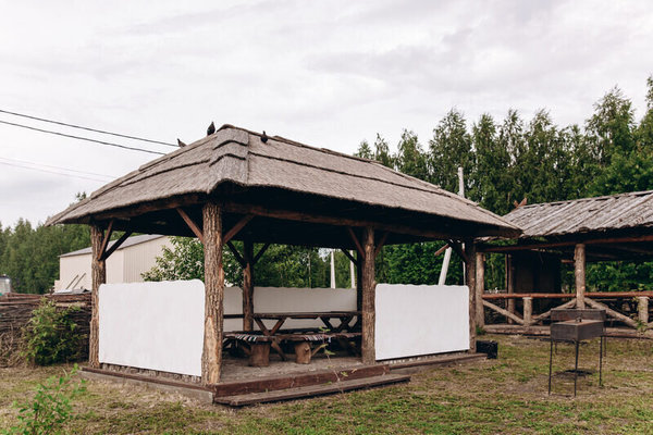 Предоставляются в аренду беседки с мангальными зонами вместимостью от 8 до 50 человек;