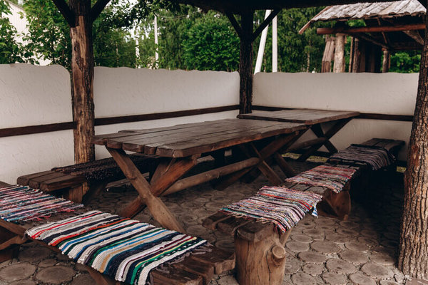 - Беседка №1 до 40 человек. Площадь беседки 63 м², имеются столы и лавки, стоимость 5000 ₽ (до 10 человек) + 400 ₽ за человека (свыше 10 человек) с 12.00 до 22.00.