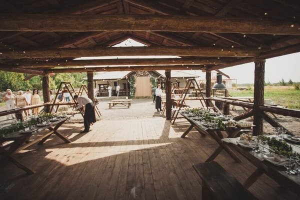 Открытая беседка №1 (вместимостью до 50 человек) + свадебное меню — от 2300 ₽/чел + 15% обслуживание.