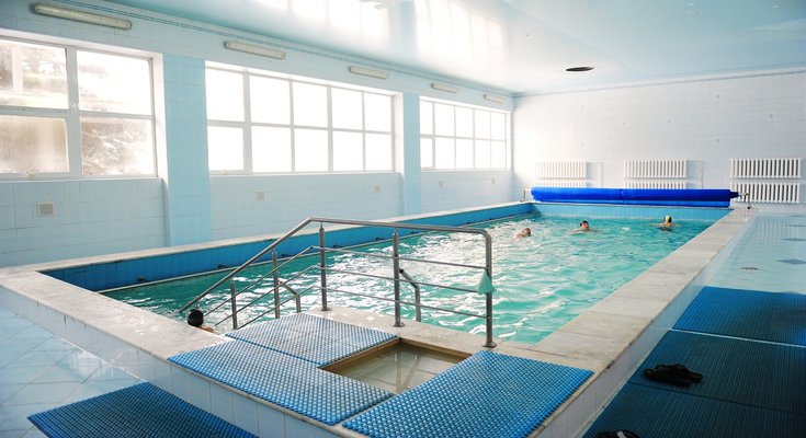 Бассейн с минеральной водой, занятия проводятся группами по заболеваниям.