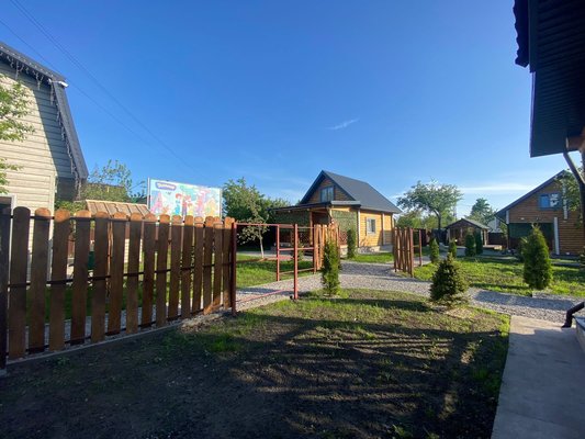 На территории оборудована детская площадка, где дети могут качаться на качелях и прыгаь батуте. Также есть открытый бассейн, настольный теннис и возможность посетить финскую сауну, русскую баню или алтайский банный чан.