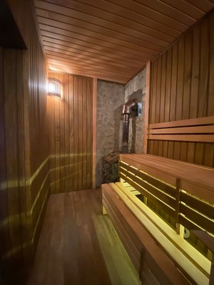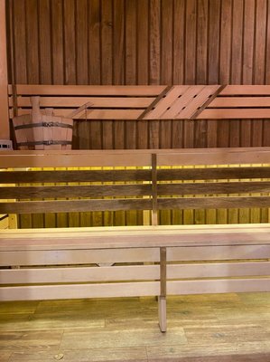 Финская сауна — это сухой горячий воздух и минимальная влажность. Температура в сауне обычно достигает 90°С, иногда доходит до 120-130°С. А влажность — от 3 до 8%, максимум — 25%. В финской сауне не используют веники, поскольку при низкой влажности они ранят кожу и не приносят никакой пользы.