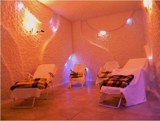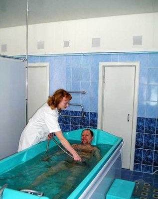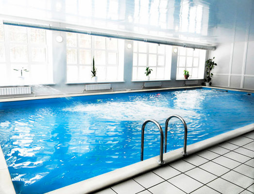 Бассейн санатория «Сосновый бор» оборудован системами гидромассажа, водопадом.