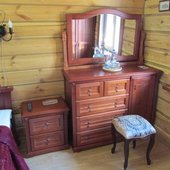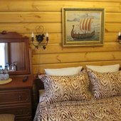 Интерьер дома в исконно русском стиле из дерева, с элементами декора ручной работы. Бесплатный wi-fi, регулируемое отопление. Оснащен всем необходимым для комфортного проживания – мебель, техника, оборудованная кухня, стиральная машина.