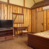 Светлые номера Azimut Суздаль отеля оформлены в стиле русской избы, обставлены традиционной деревянной мебелью, при этом оснащены кондиционерами и всеми современными удобствами. В распоряжении гостей телевизор, холодильник и собственная ванная комната.
