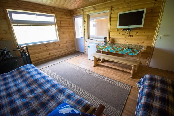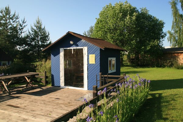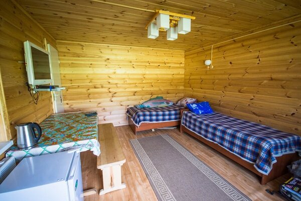 Обратите Ваше внимание, что так как «Спальный домик №2 в лесу» и «Спальный домик №1 синий» находятся на берегу водоёма, в них отсутствует водоснабжение (гости привозят с собой воду в бутылках), а туалет находится на улице за домиком (биотуалет в деревянной кабинке).