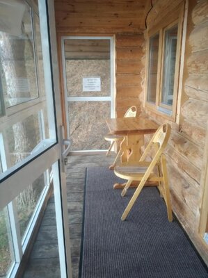 Терраса также оборудована столом и лавками, а также мангалом, что позволяет гостям наслаждаться свежим воздухом и приготовить еду на открытом огне.