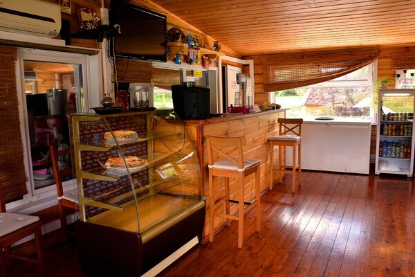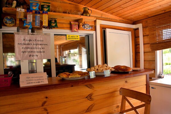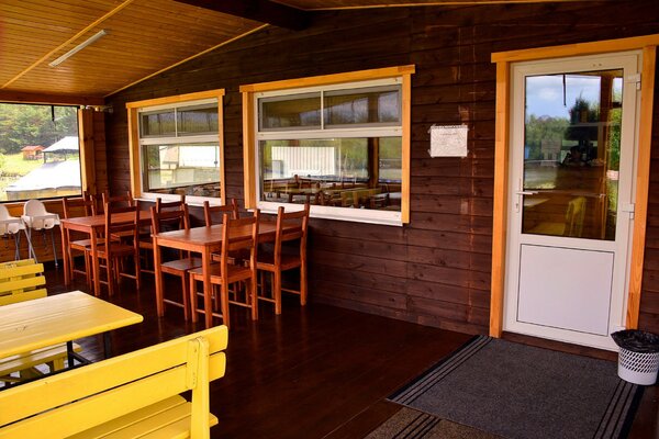В кафе базы отдыха вас ждут вкусные блюда из натуральных продуктов, выращенных на собственном огороде. Для маленьких гостей предусмотрена детская площадка, где они могут весело провести время.