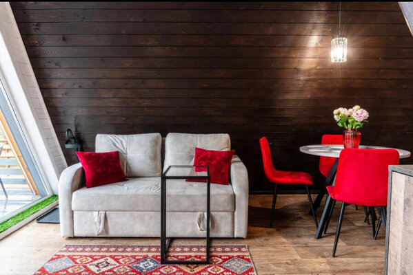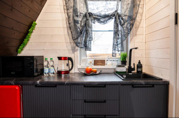 Наши домики радуют современным дизайном и удобствами, которые сделают ваше пребывание по-домашнему комфортным: