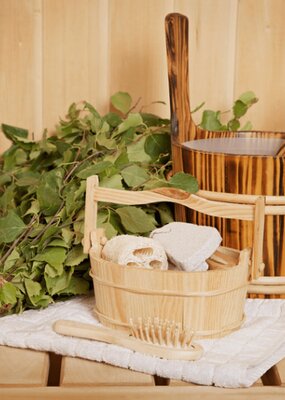 Предоставляются халаты, тапочки и полотенца на каждого гостя. Другие аксессуары для бани в ассортименте в наличии.
