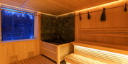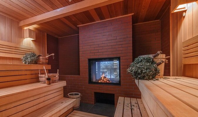 Ароматерапия с мятой и можжевельником. Два согревающих парения березовым, дубовым, можжевеловым вениками, настил из ароматного пихтового лапника. Отдых в теплой купели с пихтой и грейпфрутом укрепит иммунитет, восстановит силы.