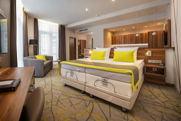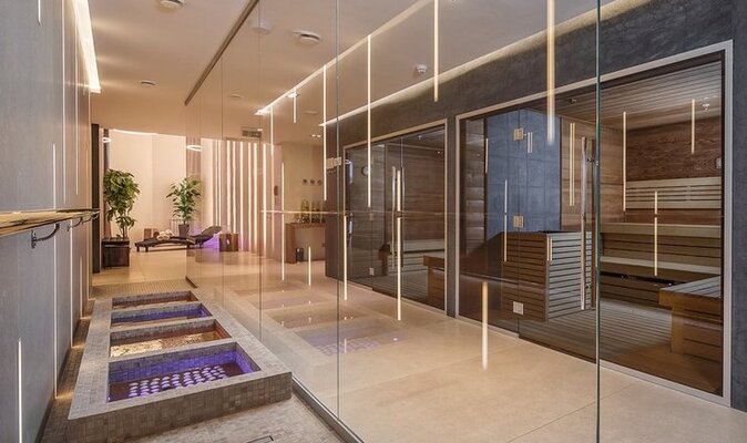 Для полноценного отдыха предусмотрен спа-центр с баней, хаммамом и сауной. На территории также есть открытый бассейн, спортзал, теннисный корт, скалодром, бесплатный Wi-Fi и охраняемая парковка. Особое внимание уделено юным гостям: отель предлагает превосходную инфраструктуру для детского досуга.