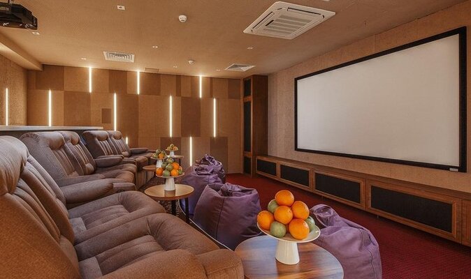 Для детей обустроены игровые зоны, работает видеозал, есть прокат спортинвентаря. По запросу предоставляются детские кроватки и стульчики для кормления, а также услуги аниматоров и нянь.
