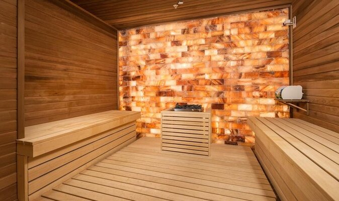 Сухая баня, для внутренней отделки которой используются соляные кристаллы в виде блоков. Посещение такой бани практически не имеет противопоказаний и подойдет для всех, кто хочет получить долгосрочный эффект от визита в термальный комплекс.