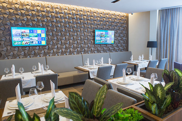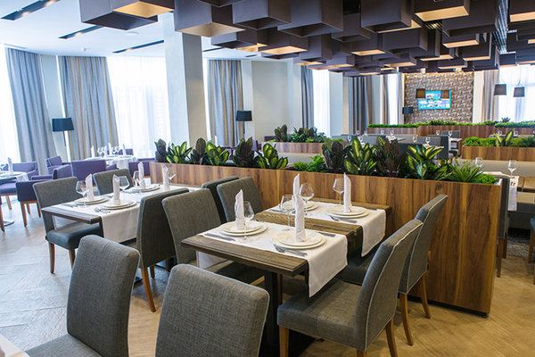 Просторный ресторан с авторской кухней, меню для всей семьи. Детская комната с анимацией.