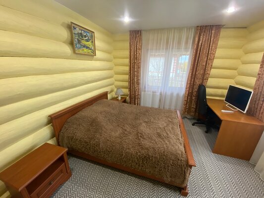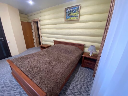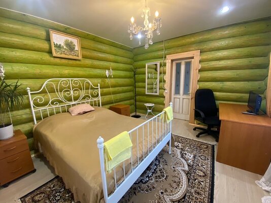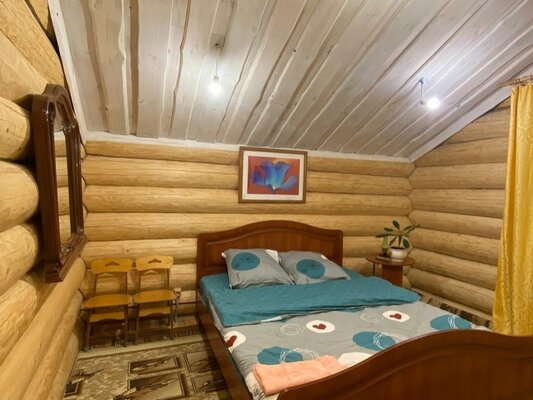 Просторное деревянное коттедж площадью 240 квадратных метров, построенный из экологически чистых бревен, полностью оснащен для комфортного проживания. Его три уровня включают цокольный этаж, первый этаж с подогреваемыми полами и уютный мансардный этаж. Внутри вы найдете все необходимое для беззаботного отдыха: современную бытовую технику, удобную мебель, посуду и банные принадлежности.