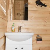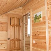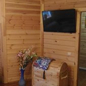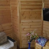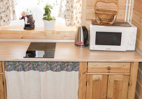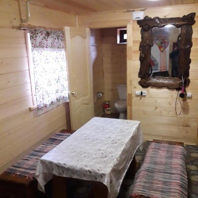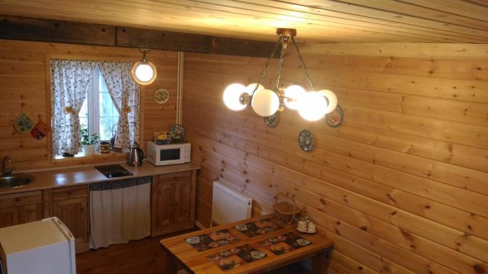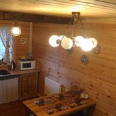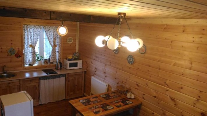 в домике все сделано полностью из дерева: стены, столы, стулья. Благодаря этому очень уютная тёплая обстановка. Порадовало наличие микроволновой печи и различных кухонных принадлежностей. Везде всё чисто – ни соринки, ни пылинки. Отличное колоритное место!
