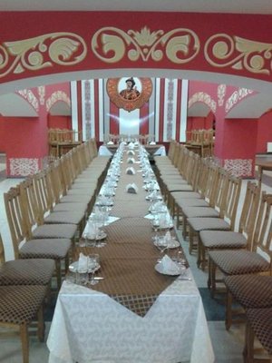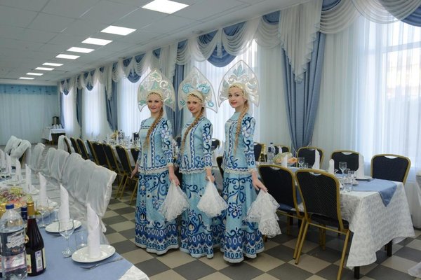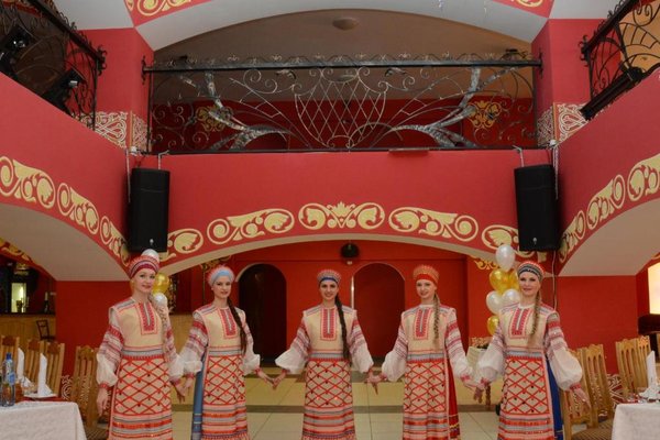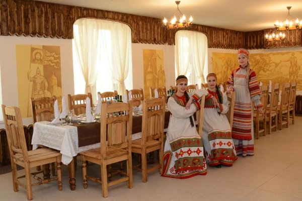 Ресторанный комплекс включает в себя 5 банкетных залов. Подаются традицонные блюда русской кухни.
