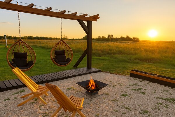 Специально оборудованная зона для приготовления шашлыка с мангалом и комплектом шампуров создаст идеальные условия для вечерних трапез на свежем воздухе, даря атмосферу уюта и природной гармонии.