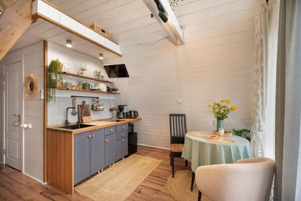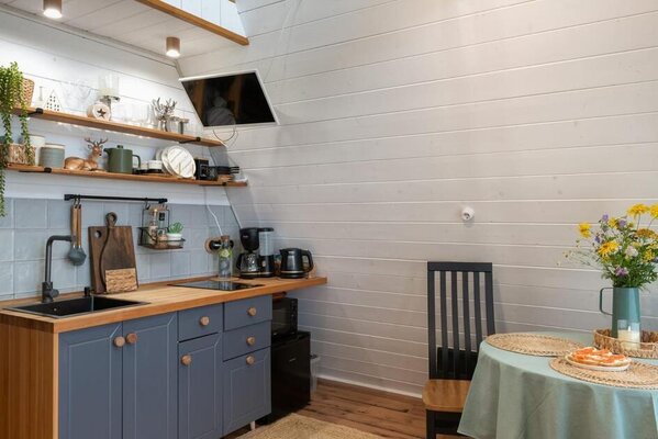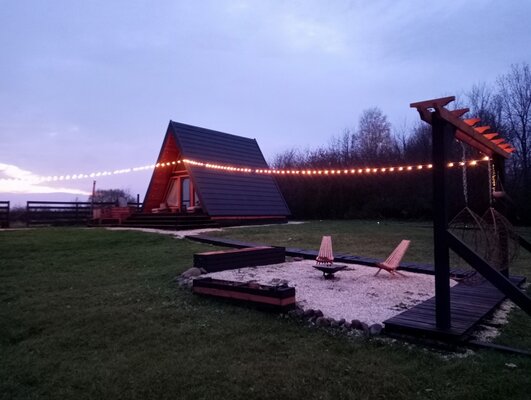 Уютный дом отдыха «Кибол» на берегу реки Каменка — идеальное место для спокойного отдыха в окружении природы. Современный дом А-фрейм предлагает все необходимое для комфортного пребывания: полностью оборудованную кухню с индукционной плитой и кофеваркой, проектор, колонку и, конечно, живописные виды.