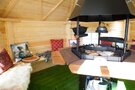 Пространство вмещает до восьми человек, а благодаря системе отопления даже в холодное время года вам будет тепло и комфортно. В центре домика расположен удобный очаг с мощной вытяжкой, а вокруг — уютные скамьи, где можно удобно разместиться и насладиться приготовленными гриль-блюдами.
