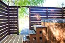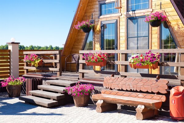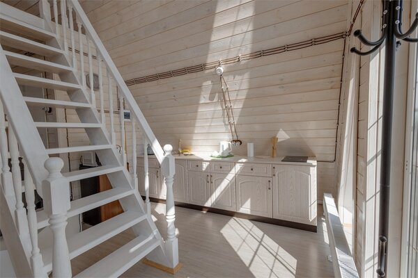 Веранда, вмещающая до 15 человек, полностью оборудована для кулинарных экспериментов и уютных застолий. Зимой она обогревается, а гибкие окна позволяют создать идеальные условия: укрыться от непогоды или насладиться свежим воздухом в жару.