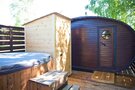 Банный чан на дровах вмещает до шести человек. Его можно наполнить ключевой водой или добавить хвойно-цитрусовую запарку, что придаст купанию особый шарм.